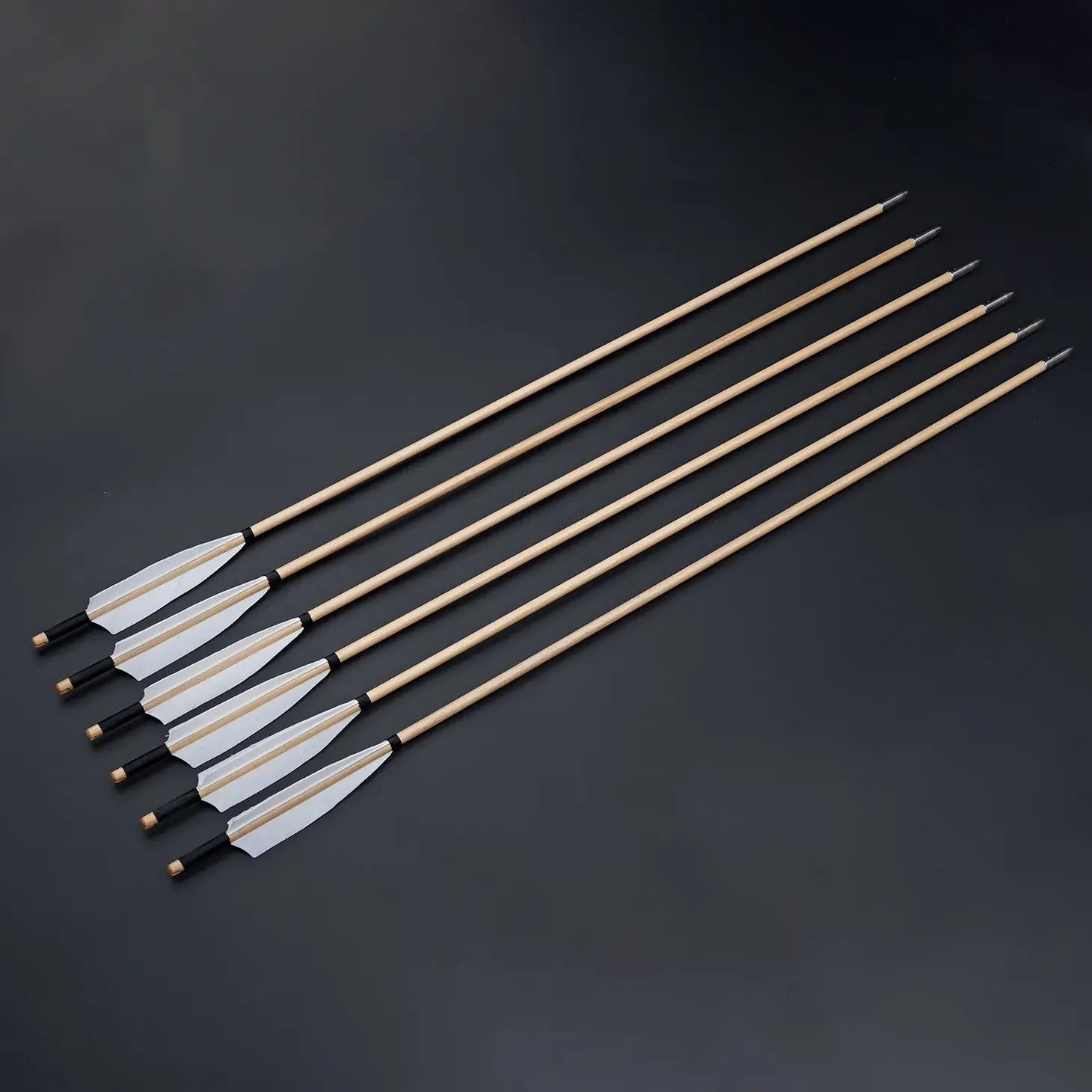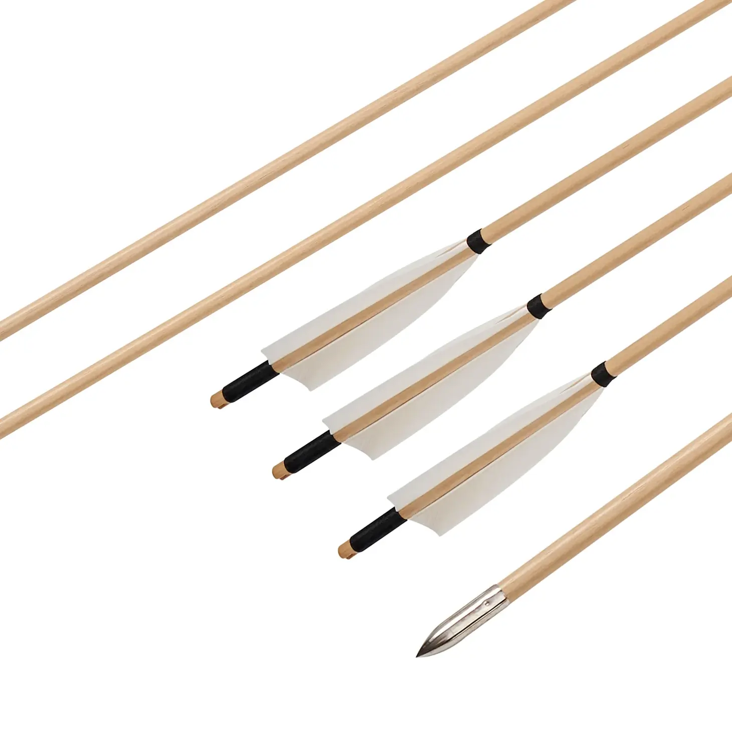 12x 31.5" Fletched Trad Archery Wooden Practice Arrows White Turkey Feather Target Shooting
