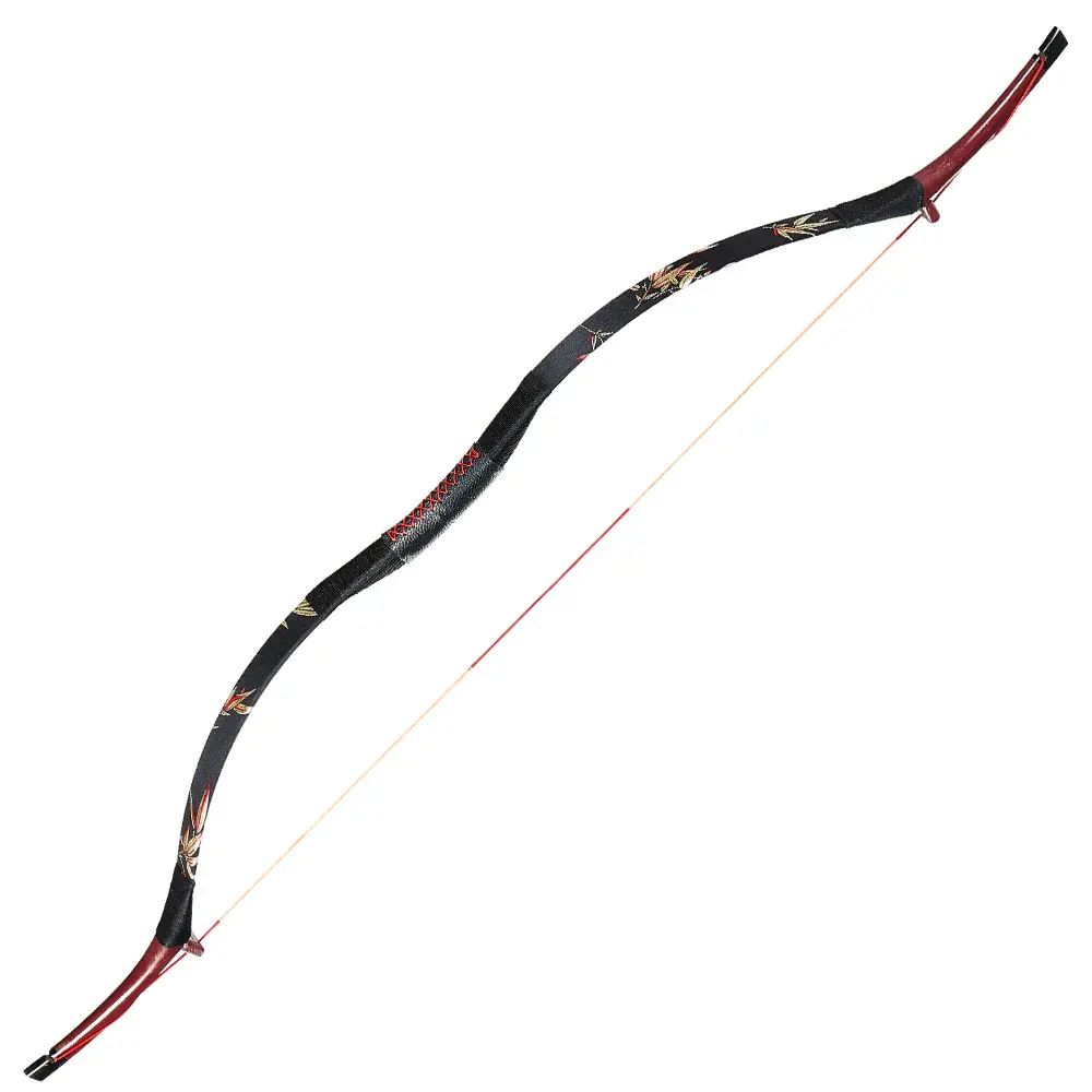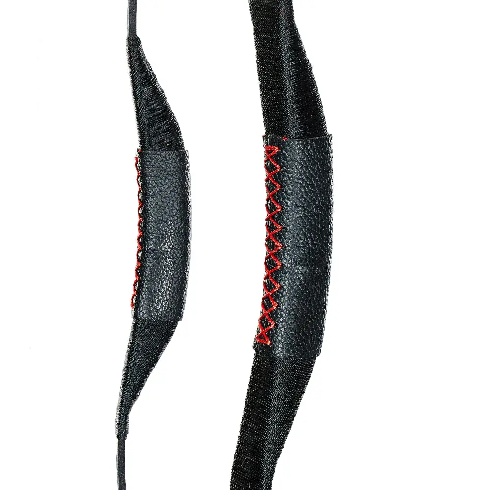 This beautifully crafted bow features traditional hand embroidery patterns on the limbs along with a black leather grip for comfort. This bow represents the traditional short bows used in ancient China. This bow is made from Robonia wood which is known for its durability and resistance to insects. The limbs also have a added layer of protection with a fiberglass epoxy resin sheet.