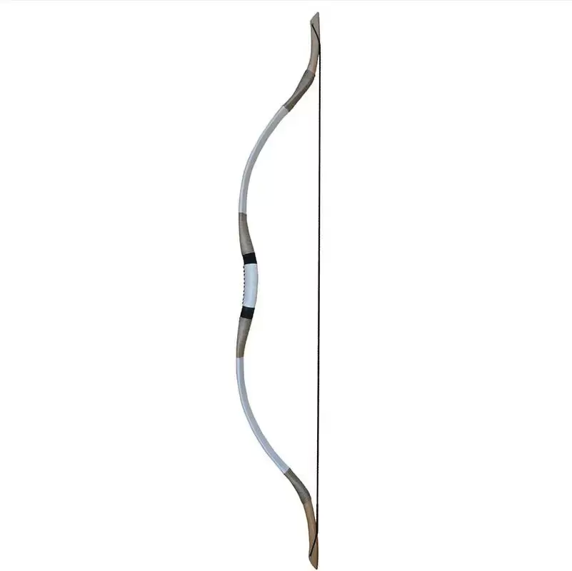 This traditional recurve longbow is a Mongolian style bow wrapped in white cow hide leather. Perfect for those who prefer a traditional style bow. This type of bow was typically used on horseback however can be used on foot as well.